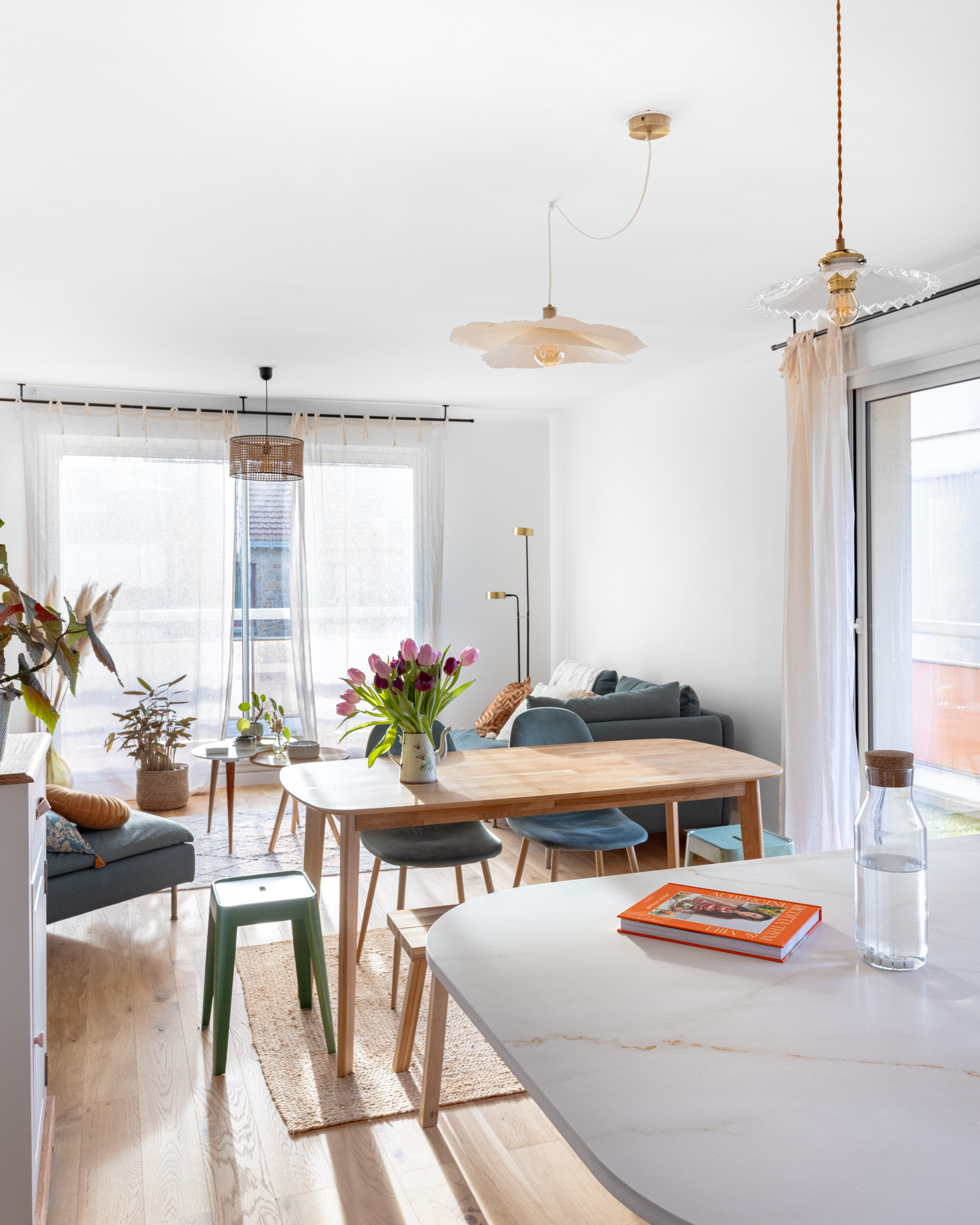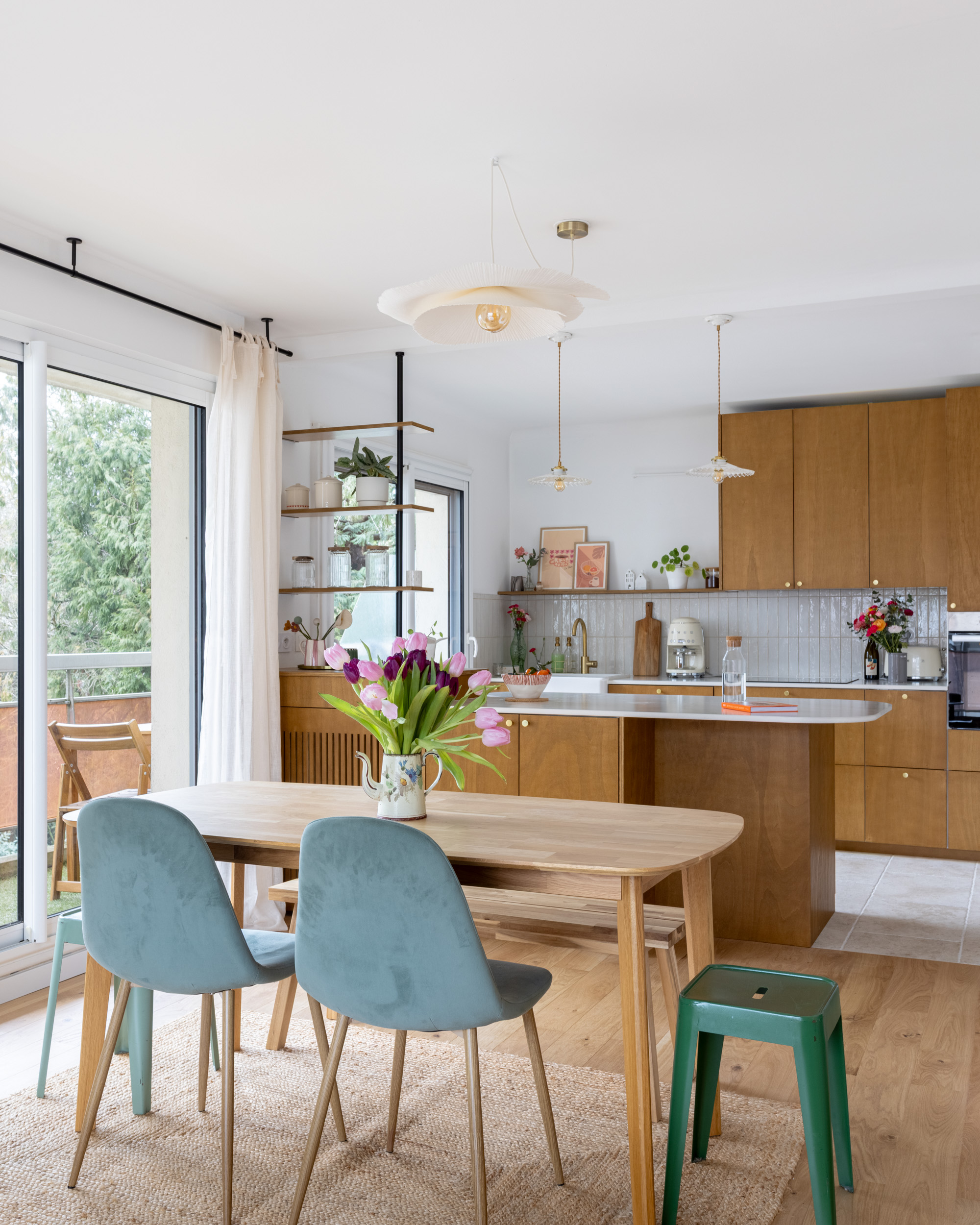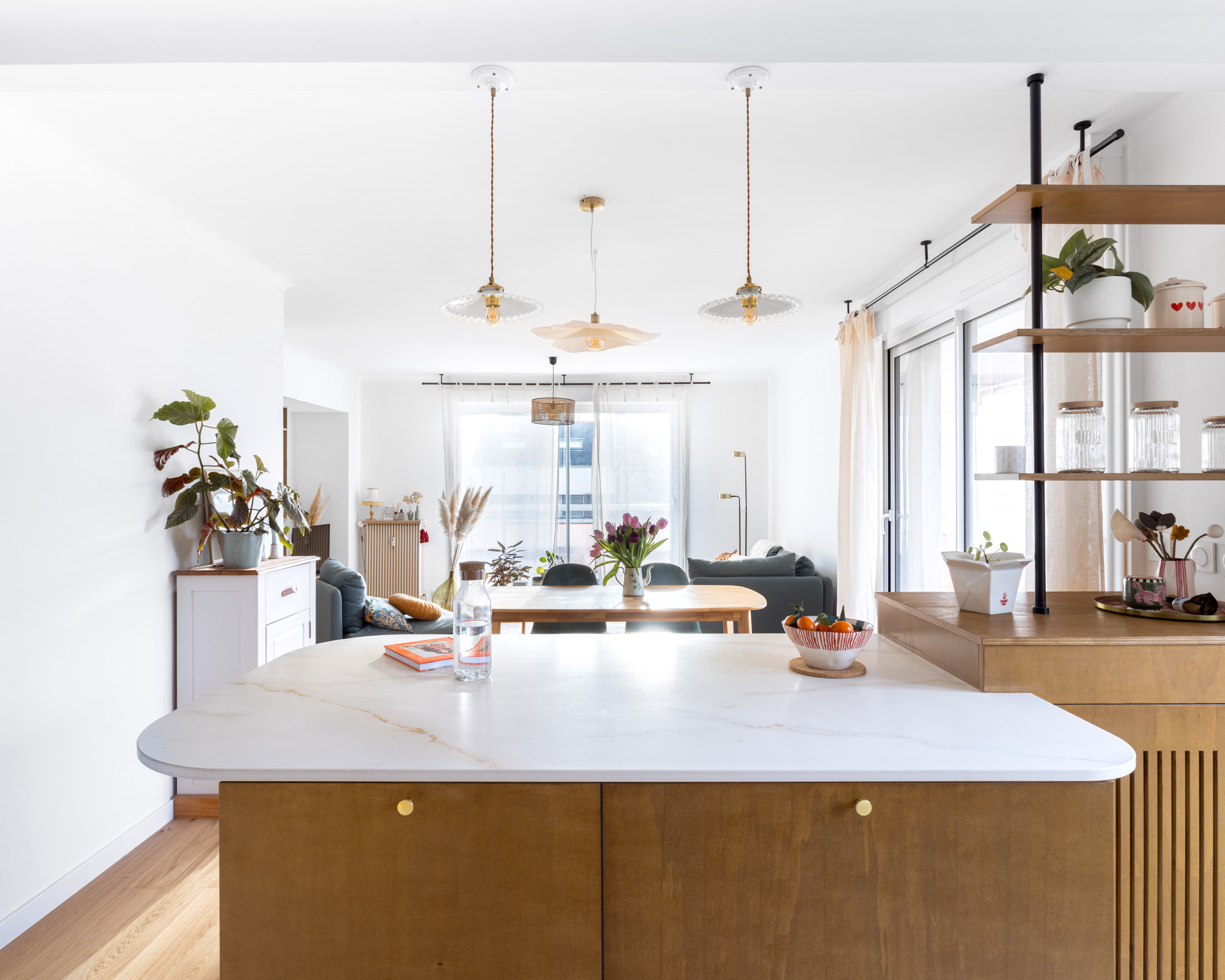 Réorganisation d’un appartement pour mieux profiter de l’orientation et ouvrir la cuisine sur le séjour.